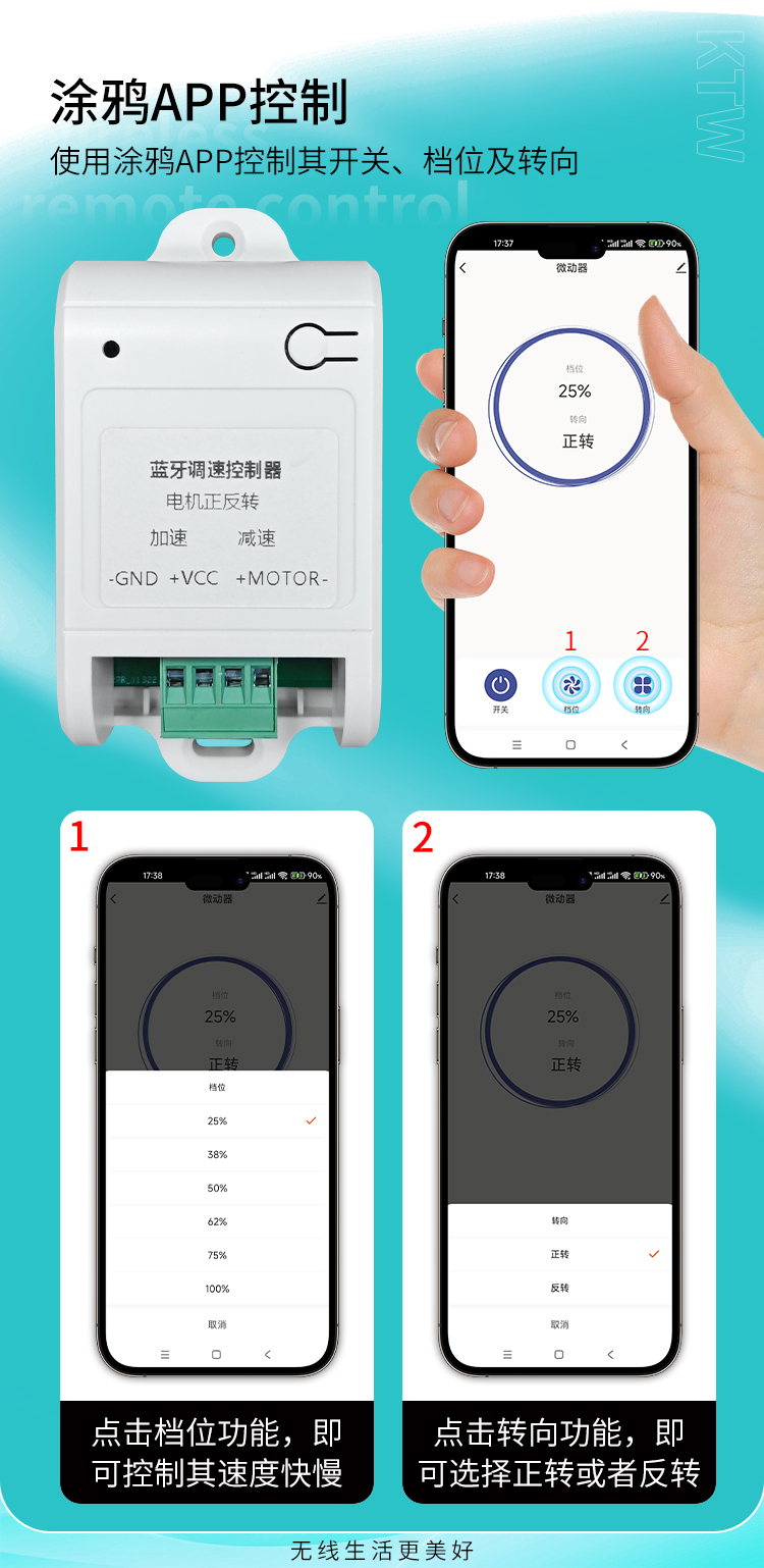 首頁 > 產品 > 丝瓜视频下载污開關控製器 > 電機正反轉調速控製器 > KTW 藍牙款電機正反轉調速控製器