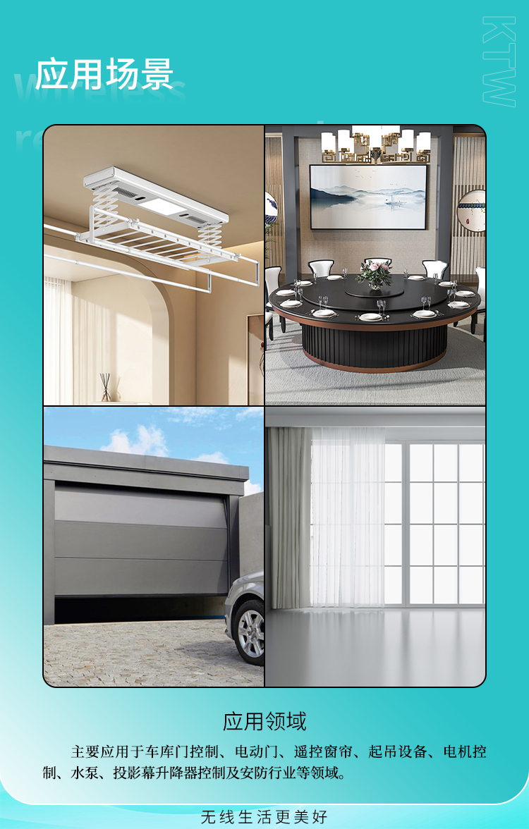 主要丝瓜视频在线下载观看於車庫門控製、電動、遙控電動窗簾、電機控製、投影幕升降器控製及安防行業等領域。