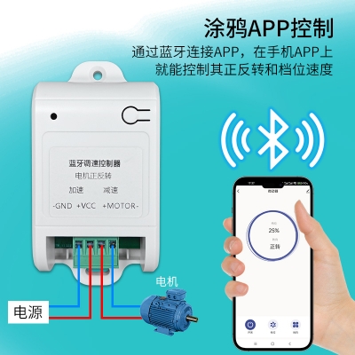 這款產品是丝瓜视频下载污藍牙電機正反轉調速控製器,可通過手機塗鴉APP進行控製,實現正轉、反轉、加減速等功能。