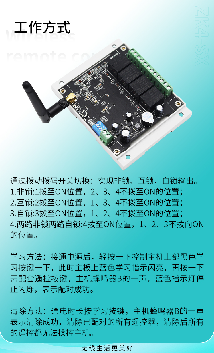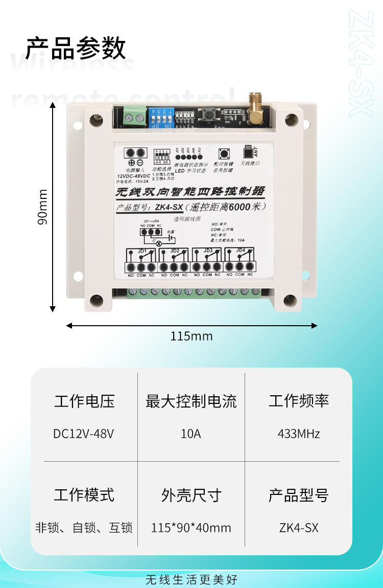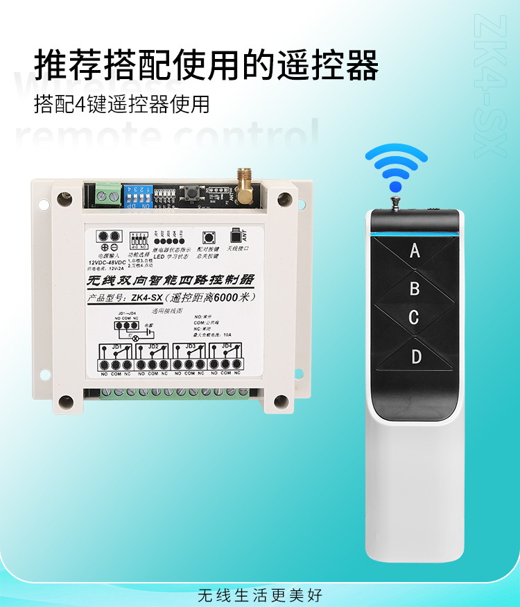 首頁 > 產品 > 大功率雙向智能控製開關 > ZK4-SX 遠距離四路雙向控製器433M丝瓜视频下载污遙控 開關控製器