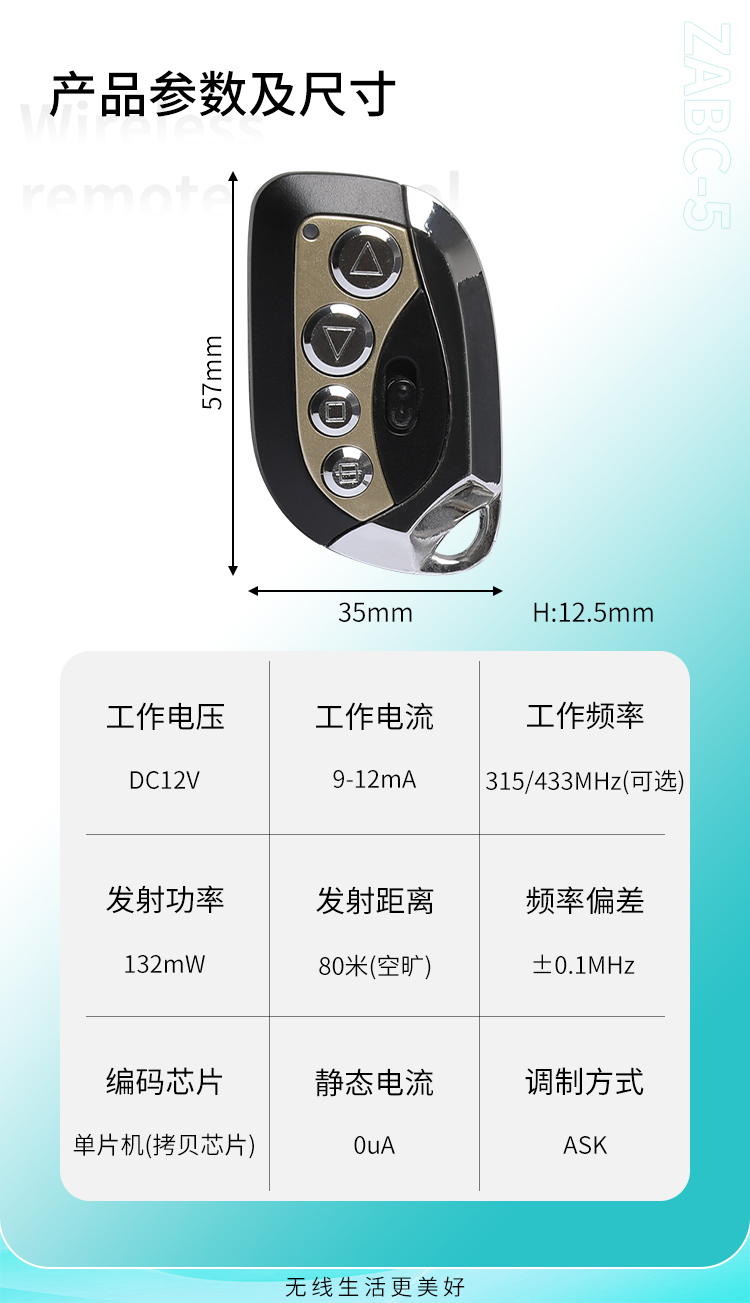 遙控開關、防盜報警、遙控門鎖、遙控電動卷簾門窗、水泵遙控、工業控製產品等;