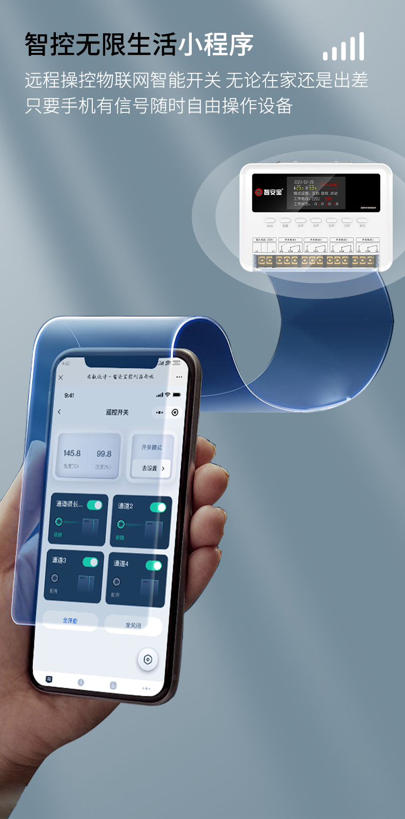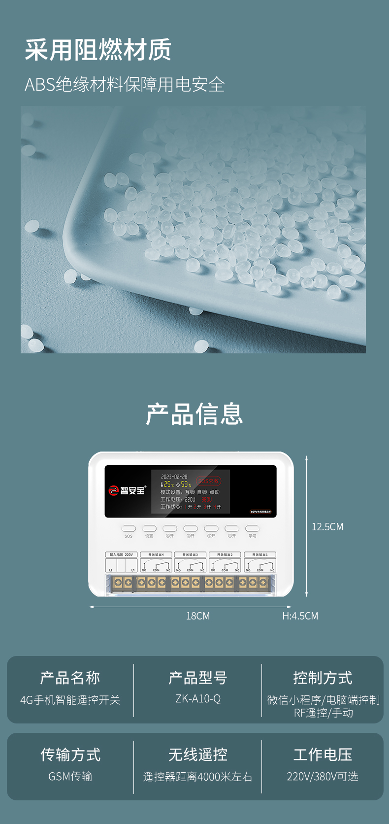 ZK-A10Q是一款四路智能遙控開關,手機小程序遠程遙控不限距離,有四大定時模式,場景設置,電腦端可視化大屏顯示。