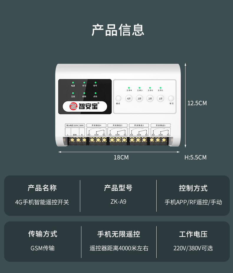 首頁 > 產品 > 物聯網APP智能控製器係列 > 4G物聯網智能開關 > ZK-A9 4G物聯網智能開關