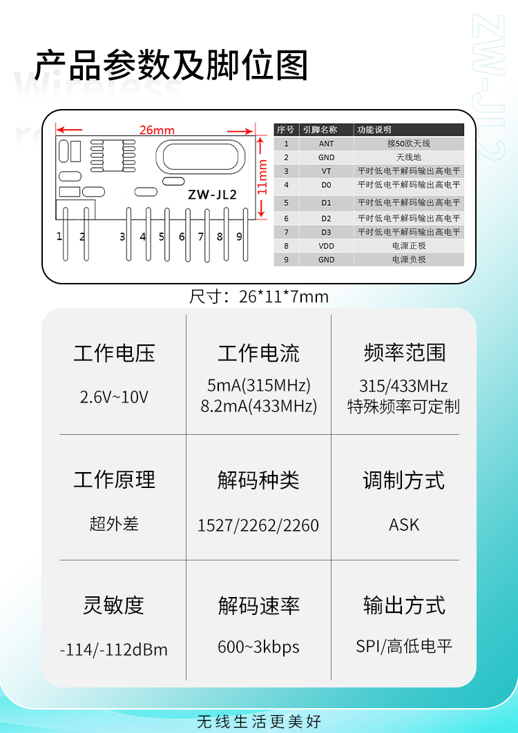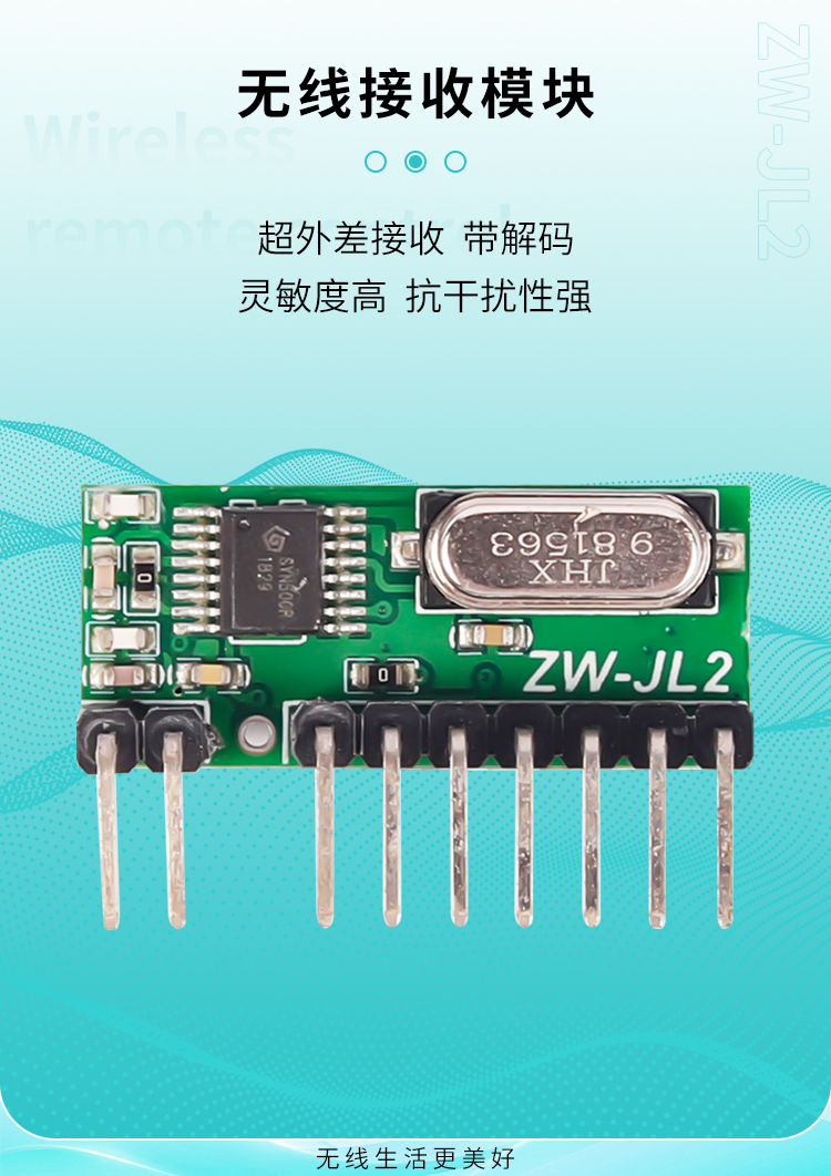 ZW-JL2是一款超外差帶解碼丝瓜视频下载污接收模塊,它具有高靈敏度、抗幹擾性強、性價比高等特點