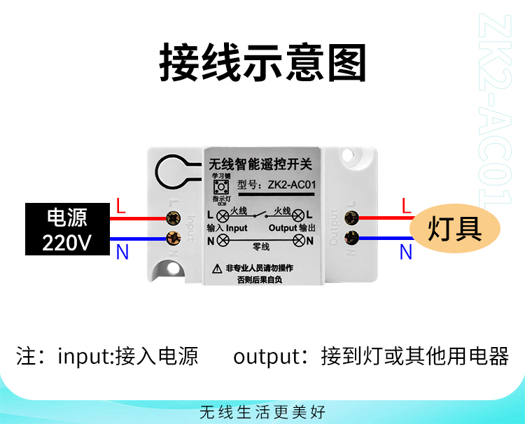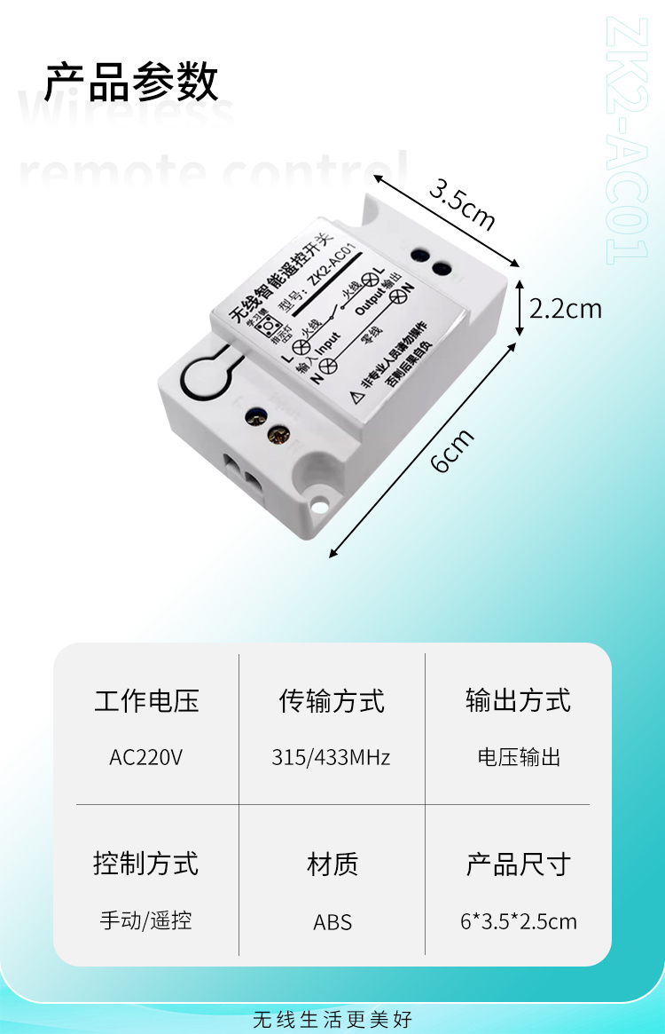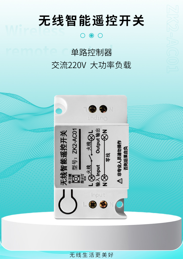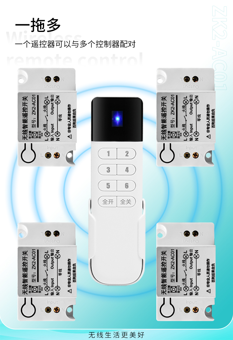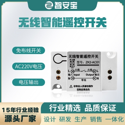 ZK2-AC01 是一款220V單路控製器,通過手動/遙控控製,可同時多個配對一個遙控器,實現一拖多路控製