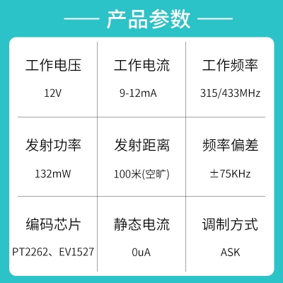 遙控開關、遙控車庫門、防盜報警、遙控門鎖、遙控電動卷簾門窗、水泵遙控、工業控製產品等;