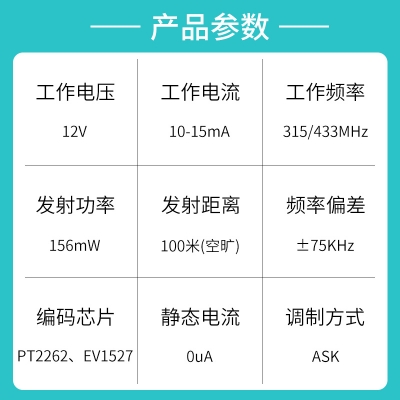 遙控開關、遙控車庫門、防盜報警、遙控門鎖、遙控電動卷簾門窗、水泵遙控、工業控製產品等;