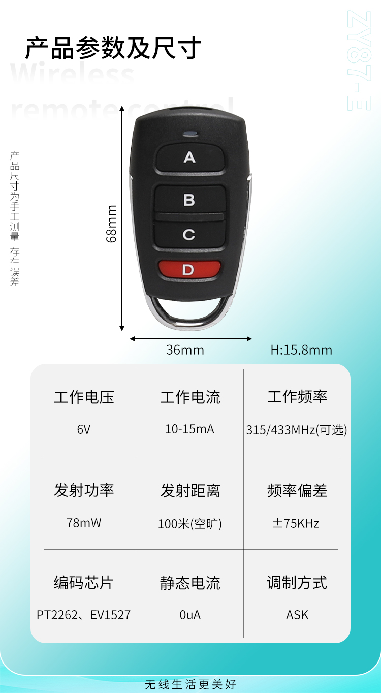 ZY87-E是一款小功率丝瓜视频下载污遙控器,外觀精美